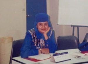 أصية رضوي وهى ترتدى زي الضيافة الجوية