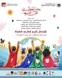 يحتضن مركز محمود مختار الثقافي بجمهورية مصر العربية يومي 12 و13 نوفمبر 2025 فعاليات فنية وثقافية متنوعة ضمن مبادرة وزارة الثقافة المصرية «مصر تتحدث عن نفسها» بمشاركة خاصة لأطفال ذوي الاحتياجات الخاصة. في إطار احتفالات اليوم العالمي للطفولة،