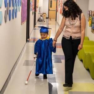 طفل كفيف يستخدم عصا بيضاء لأول مرة